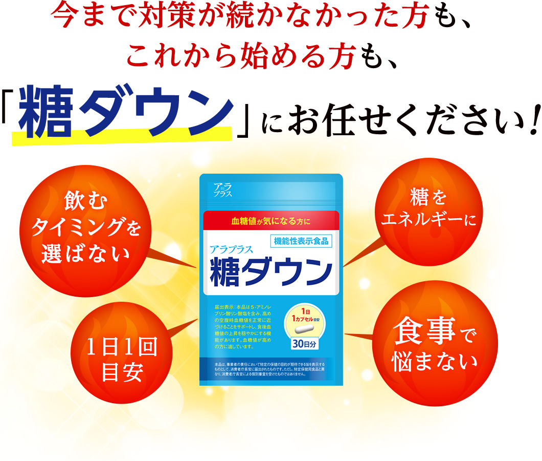 生活習慣を改善しつつも、この「アラプラス糖ダウン」は